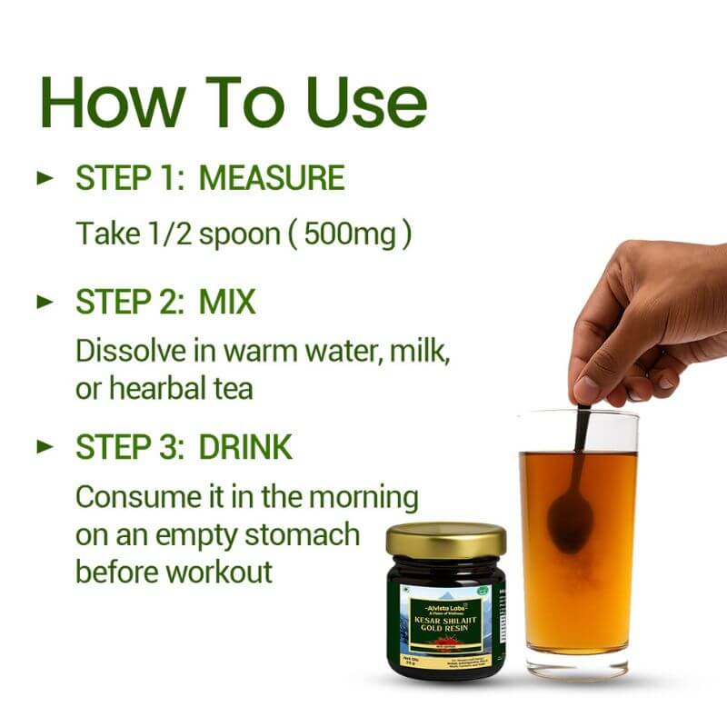 Take 1/4th spoon of Alvista Kesar Shilajit Gold Resin