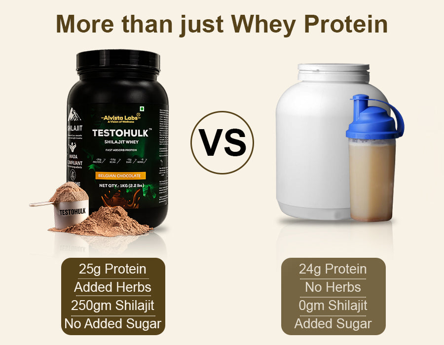 TestoHulk™ Shilajit Whey Fast Absorb Protein is the best protein for muscles gaining, crafted for those who train with purpose. Each scoop delivers high-quality isolate whey protein, pure Himalayan Shilajit resin, and 8 Ayurvedic herbs, made to help you support your rhythm, recovery, and resilience.
